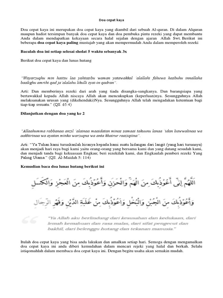Doa mohon rezeki rezeki semata mata adalah alloh yang menentukan. 15 doa agar dimudahkan rezeki yang mustajab · istighfar / astaghfirullahal adhin seribu kali · laa ilaaha illa anta subhanaka inni kuntu minadhdholimin [seratus . Selain memperbanyak membaca istighfar, ada 6 doa yang yang bisa kamu amalkan untuk meminta kemudahan dan keberkahan rezeki. Berikut kumpulan doa meminta rezeki yang berlimpah yang bisa kamu baca. Doa agar diberi rezeki yang berkah.
